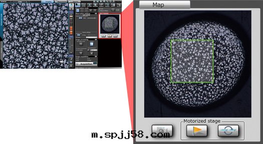 No such thing as "outside the field of vision." Just move the observation position on the screen, and the motorized stage will move the sample to that place. As the stage moves, the system automatically stitches images into a single large field of view, in real time. Where conventional microscopes reduce field area with increases in magnification, Panoramic View maintains the original field while giving close-up clarity - with 2D, expanded focus, or 3D, or any combination of one or all.