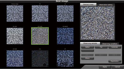 Now you can operate your microscope just by choosing, and leave the inspection method up to the microscope. That ensures the best possible image, whether looking for defects, uneven surfaces, or foreign objects. Anyone can operate the system, beginner or expert, and it can be customized for operator or operation. Put the inspection methods in memory, and whoever operates the scope will get the same results; no scattering.