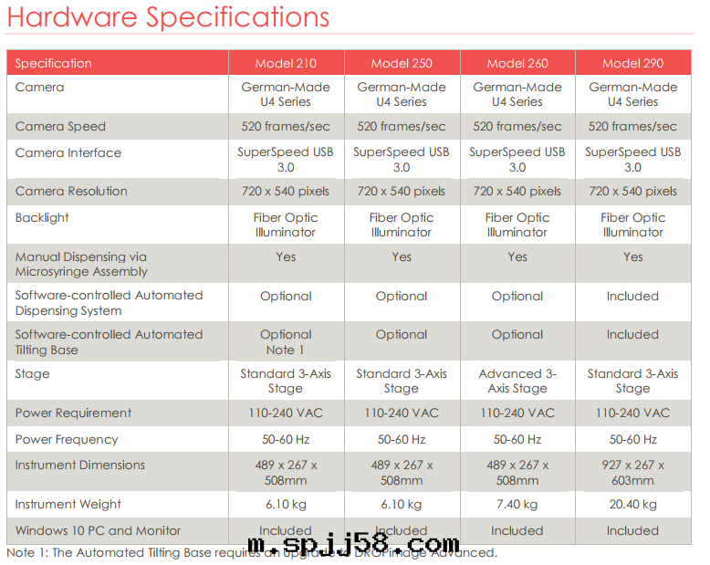Model 290 includes our U4 Series 520 frames/second SuperSpeed digital camera. The fiber optic illuminator provides adjustable backlighting and each system ships with a PC and LCD to make it a complete turn-key ready-to-use instrument.