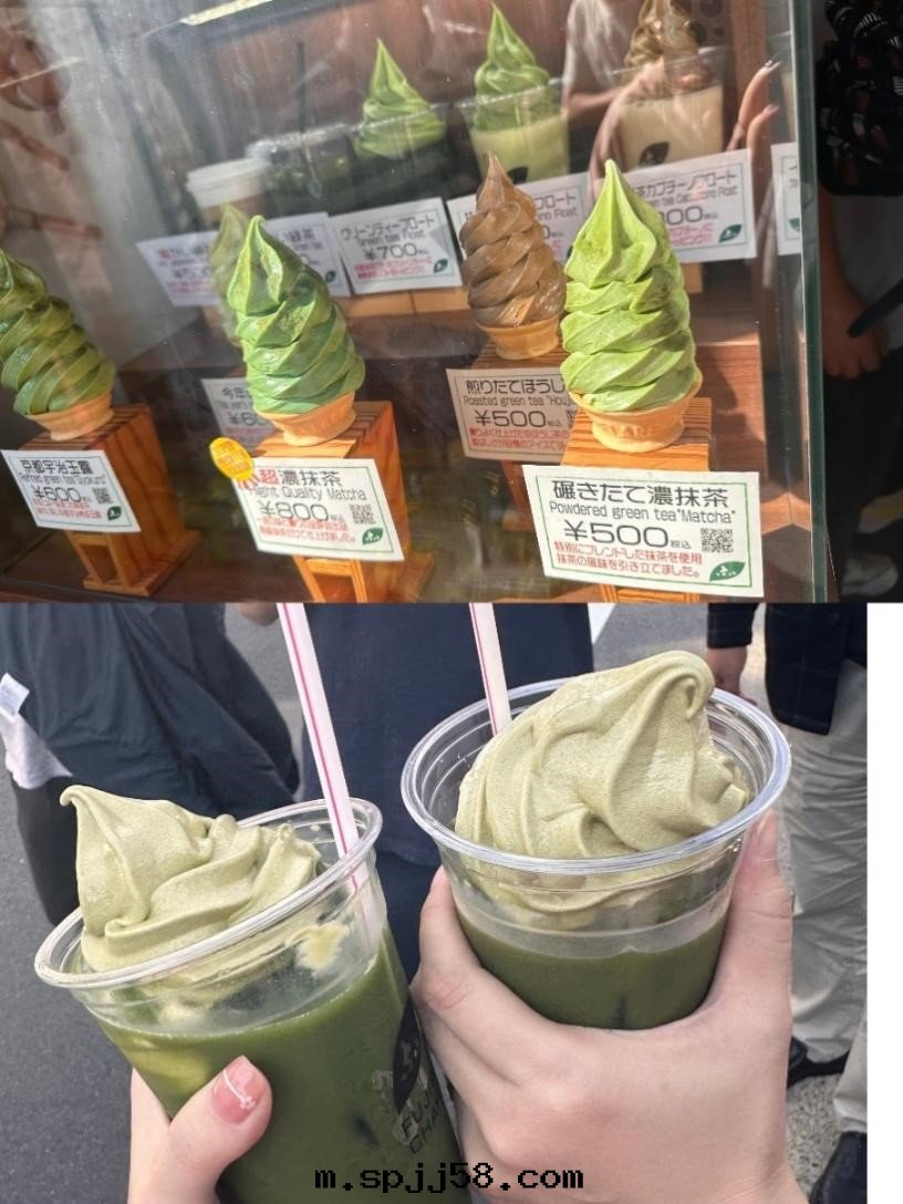 吃完午飯又乘上(shàng)大(dà)巴,約十(shí)几分(fēn)鐘(zhōng)後(hòu)到(dào)达(dá)了清(qīng)水(shuǐ)寺山(shān)下(xià),從这里(lǐ)就(jiù)要(yào)徒步走(zǒu)上(shàng)一(yī)段,才能最(zuì)終(zhōng)抵达(dá)目的(de)地(dì)。路(lù)上(shàng)随處(chù)可(kě)見(jiàn)穿着和(hé)服的(de)人(rén)们(men),沿着狹窄(zhǎi)的(de)街(jiē)道(dào)一(yī)路(lù)向(xiàng)前(qián),会(huì)经过(guò)一(yī)家(jiā)超有(yǒu)名(míng)的(de)抹茶(chá)冰淇淋店(diàn),甜(tián)中(zhōng)微苦(kǔ)的(de)口(kǒu)感(gǎn),加上(shàng)冰凉(liáng)的(de)温(wēn)度,在(zài)微热(rè)的(de)當下(xià)簡直(zhí)是(shì)最(zuì)棒的(de)選擇了。