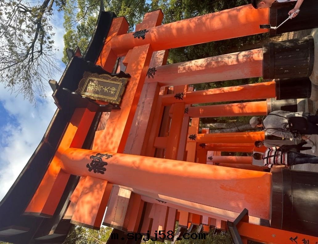 從清(qīng)水(shuǐ)寺出(chū)来(lái)後(hòu),即刻(kè)趕往伏見(jiàn)稻荷大(dà)社。稻荷神是(shì)農業與(yǔ)商業的(de)神明(míng),香(xiāng)客前(qián)来(lái)祭拜求取(qǔ)農作(zuò)丰收(shōu)、生(shēng)意(yì)興隆、交通(tòng)安(ān)全(quán)。伏見(jiàn)稻荷大(dà)社的(de)入(rù)口(kǒu),矗立着由(yóu)丰臣秀吉于(yú)1589年(nián)捐贈的(de)大(dà)鸟居(jū),後(hòu)面(miàn)便是(shì)神社的(de)主(zhǔ)殿及(jí)其(qí)他(tā)建筑物(wù)。在(zài)神社里(lǐ),還(huán)能見(jiàn)到(dào)各(gè)式各(gè)样的(de)狐狸石(dàn)像,这是(shì)因(yīn)为(wèi)狐狸被(bèi)視为(wèi)神明(míng)稻荷的(de)使者(zhě)。狐狸臉形的(de)繪馬是(shì)这里(lǐ)的(de)一(yī)个(gè)特(tè)色(sè)。这里(lǐ)最(zuì)出(chū)名(míng)的(de)要(yào)數神社主(zhǔ)殿後(hòu)面(miàn)密集的(de)朱紅(hóng)色(sè)“千(qiān)本(běn)鸟居(jū)”,是(shì)京(jīng)都最(zuì)具代(dài)表(biǎo)性(xìng)的(de)景觀之(zhī)一(yī),在(zài)电影《藝伎回(huí)憶录(lù)》中(zhōng)也(yě)曾出(chū)現(xiàn)过(guò)。成百上(shàng)千(qiān)座的(de)朱紅(hóng)色(sè)鸟居(jū)構成了一(yī)条(tiáo)通(tòng)往稻荷山(shān)山(shān)頂的(de)通(tòng)道(dào),其(qí)間(jiān)還(huán)有(yǒu)几十(shí)尊(zūn)狐狸石(dàn)像。